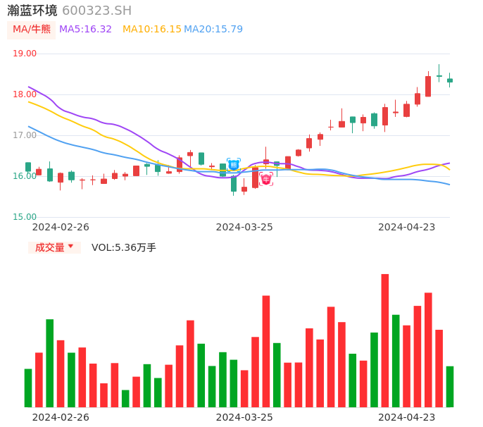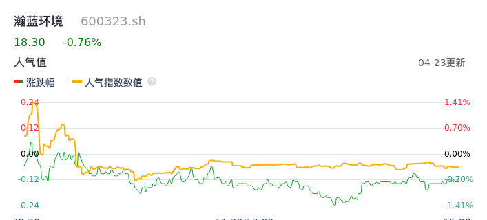 04月23日,瀚蓝环境收报18.30,股价涨幅-0.76%,成交金额9812.94万元,换手率0.66%。
