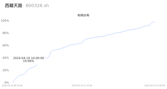 600326西藏天路2024年04月19日成交18.45万手,成交金额6236.98万元,相较昨日缩量4.40万手,换手率1.50%,成交清淡。