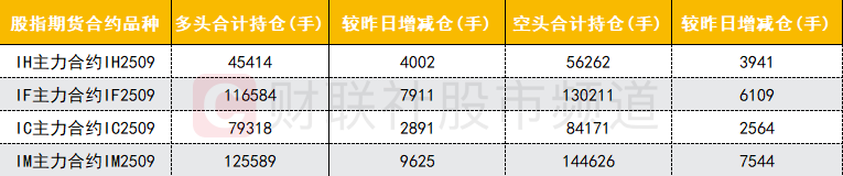 四大期指主力合约多空双方均大幅加仓,且多头加仓数量均大于空头,其中IF、IM合约多头加仓数量明显大于空头。