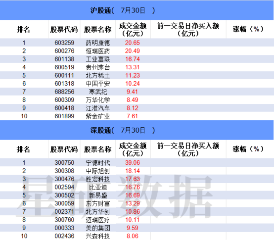 从沪股通前十大成交个股来看,药明康德位居首位;恒瑞医药和工业富联分居二、三位。