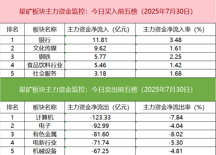 板块资金流出方面,计算机板块主力资金净流出居首。