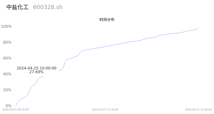 600328中盐化工2024年04月25日成交22.23万手,成交金额1.67亿元,相较昨日缩量8725手,换手率1.53%,成交清淡。