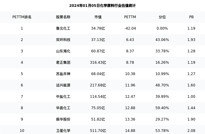 从估值角度看:中盐化工最新市盈率PETTM为12.47,在行业内排名6/56,处于39.89分位。