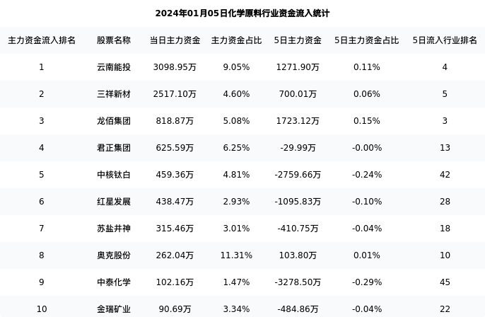 从主力资金流向来看,化学原料行业今日主力资金流入17.15亿元,在所有申万二级行业中排名:2/131。