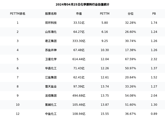 从估值角度看:中盐化工最新市盈率PETTM为15.55,在行业内排名12/55,处于36.67分位。