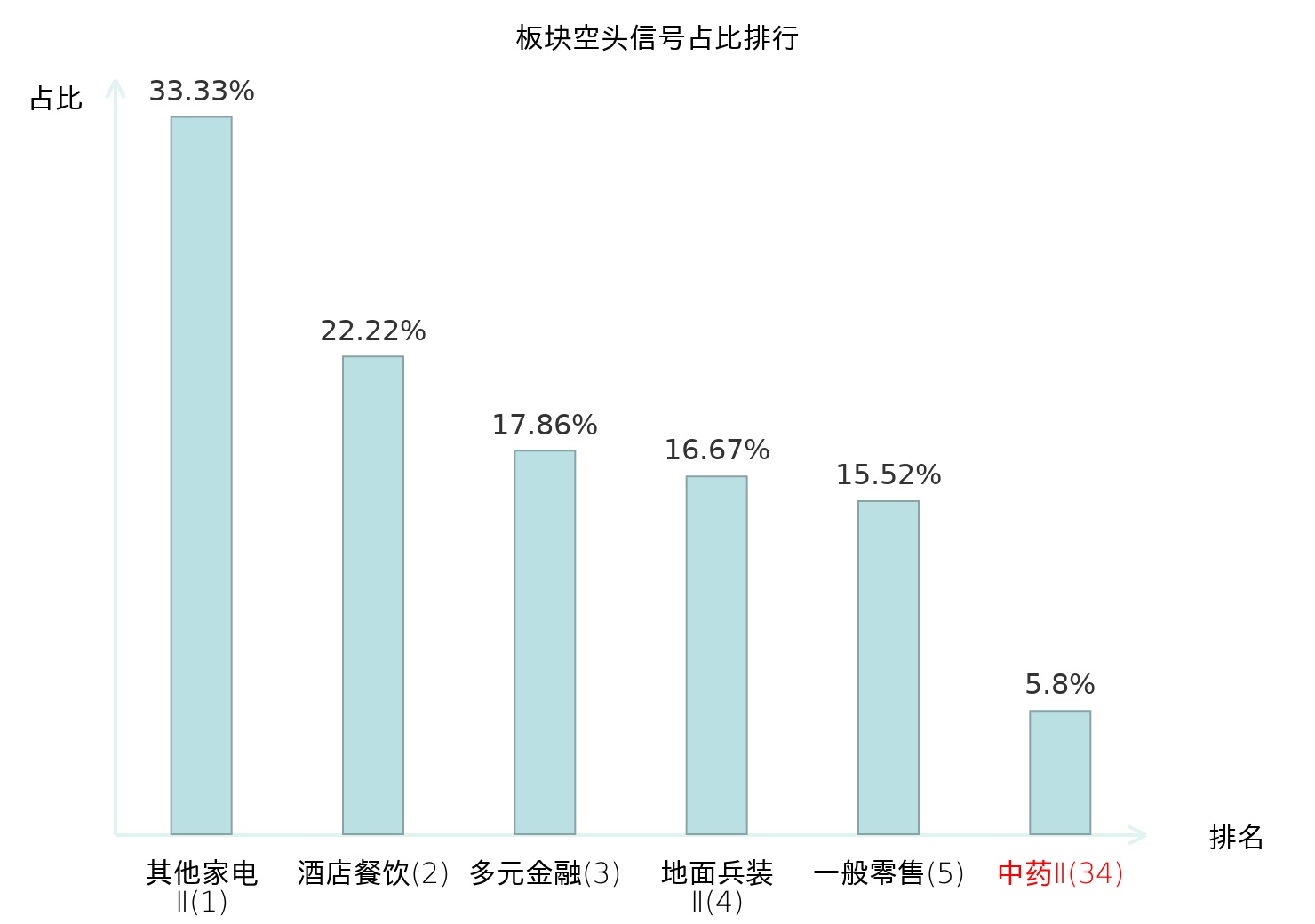 全市场所有行业板块中主力空头信号占比排名中,其他家电Ⅱ板块位居第一。广告营销板块名次提升最快,较昨日上升111位。