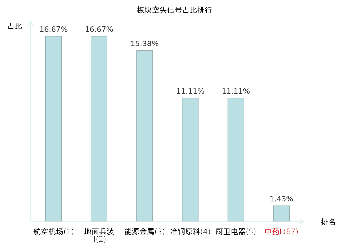 全市场所有行业板块中主力空头信号占比排名中,航空机场板块位居第一。家电零部件Ⅱ板块名次提升最快,较昨日上升110位。
