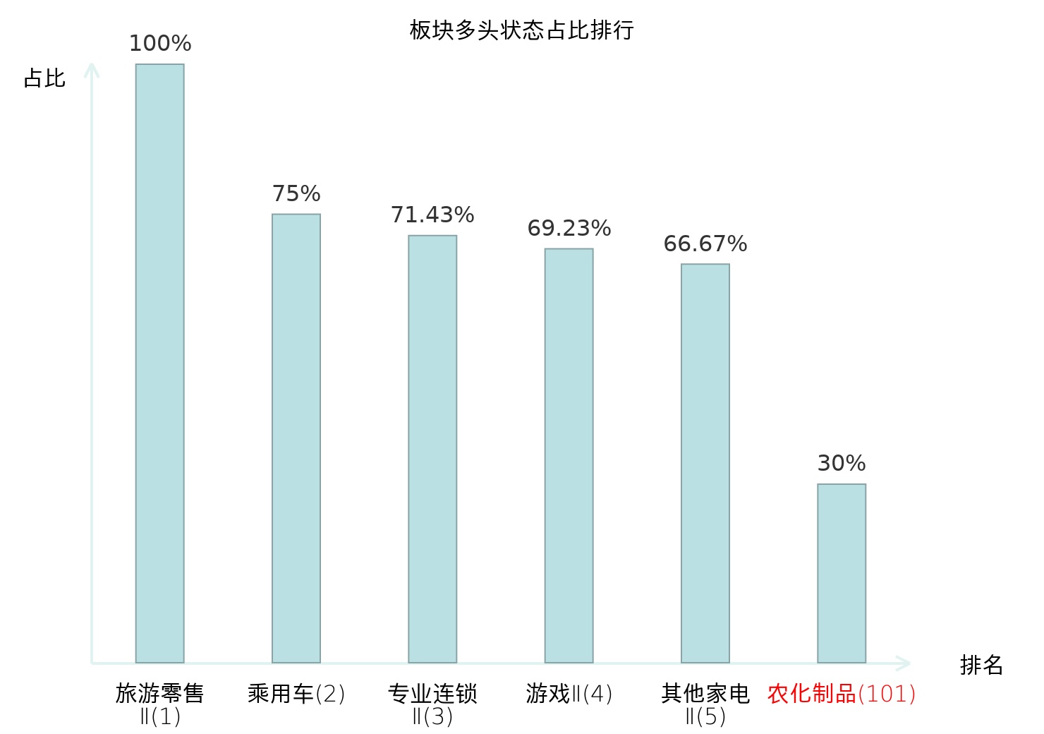 全市场所有行业板块中主力多头状态占比排名中,旅游零售Ⅱ板块位居第一。保险Ⅱ板块名次提升最快,较昨日上升82位。