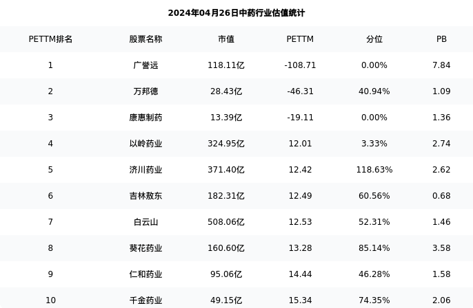 从估值角度看:白云山最新市盈率PETTM为12.53,在行业内排名4/71,处于52.31分位。