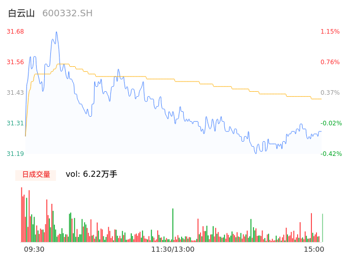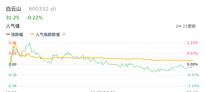 04月25日,白云山收报31.25,股价涨幅-0.22%,成交金额1.95亿元,换手率0.44%。