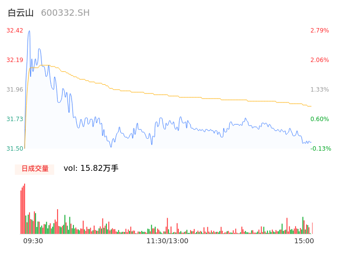 04月22日,白云山收报31.55,股价涨幅0.03%,成交金额5.03亿元,换手率1.13%。