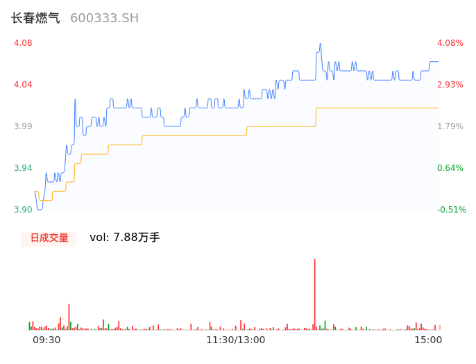 04月29日,长春燃气收报4.06,股价涨幅3.57%,成交金额3162.80万元,换手率1.29%。