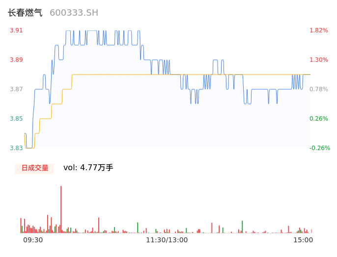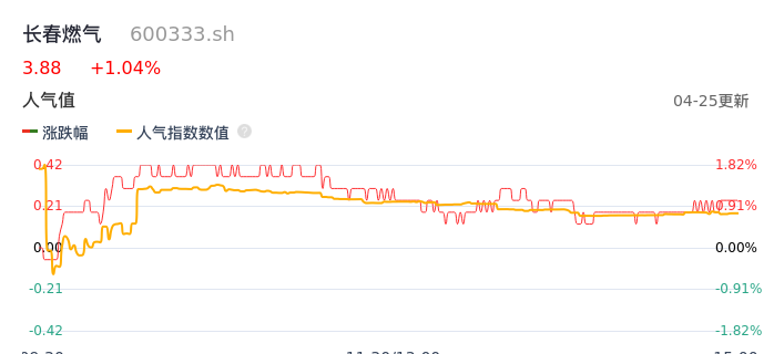 04月25日,长春燃气收报3.88,股价涨幅1.04%,成交金额1849.66万元,换手率0.78%。