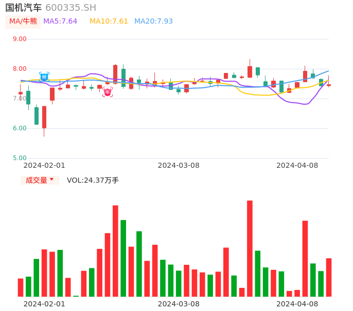 04月08日,国机汽车收报7.47,股价涨幅0.67%,成交金额1.84亿元,换手率1.63%。