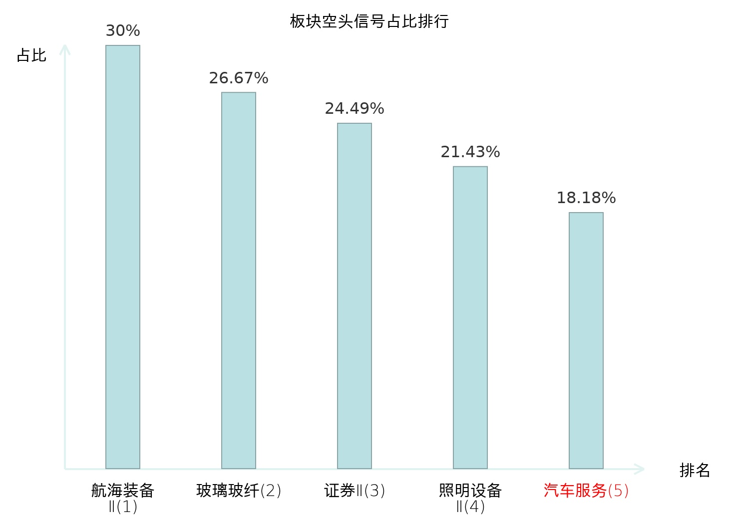 全市场所有行业板块中主力空头信号占比排名中,航海装备Ⅱ板块位居第一。证券Ⅱ板块名次提升最快,较昨日上升125位。