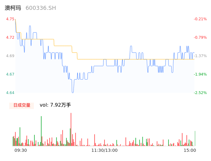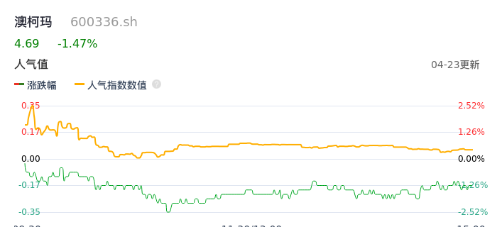 04月23日,澳柯玛收报4.69,股价涨幅-1.47%,成交金额3716.95万元,换手率0.99%。