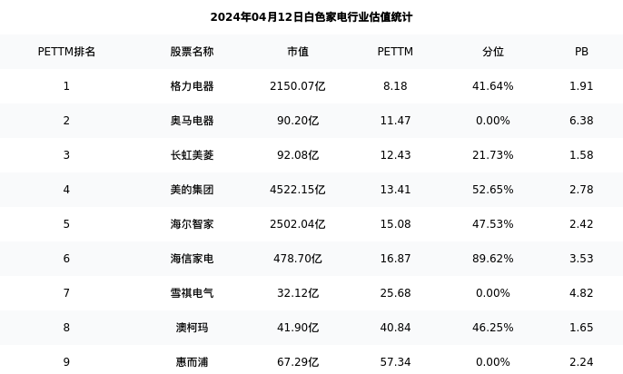 从估值角度看:澳柯玛最新市盈率PETTM为40.84,在行业内排名8/9,处于46.25分位。