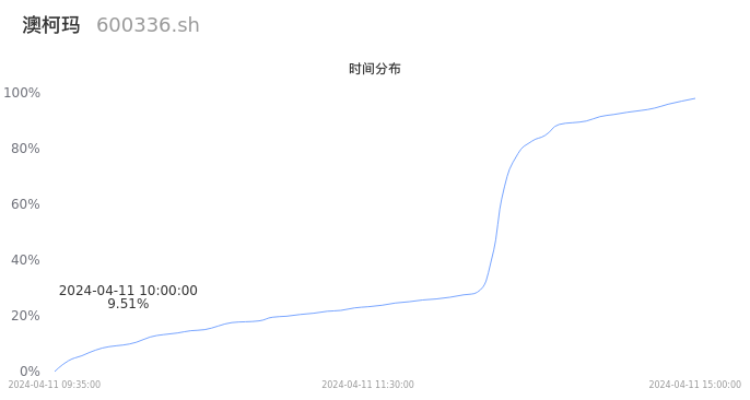 根据成交分布分析,该股票当天放量成交,成交清淡。时间上看,早盘前半小时成交量占据当天总成交量的9.51%;价格上看,成交呈现中间峰。成交分布分析主要研究股票成交的分布特性,不具有预测功能,请知悉。