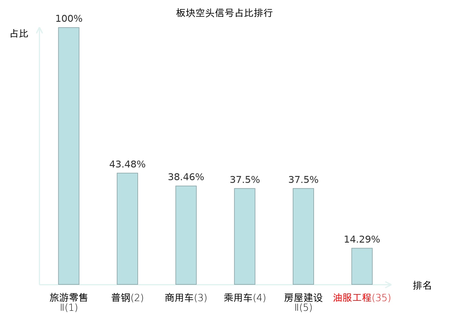 全市场所有行业板块中主力空头信号占比排名中,旅游零售Ⅱ板块位居第一。普钢板块名次提升最快,较昨日上升114位。