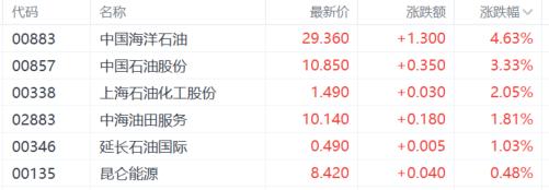 今日,港股油气设备、石油股集体大涨,山东墨龙涨超14%,百勤油服涨超8%,华油能源涨超7%,中国海洋石油涨超4%,中国石油股份、中石化油服、中海油田服务跟涨。
