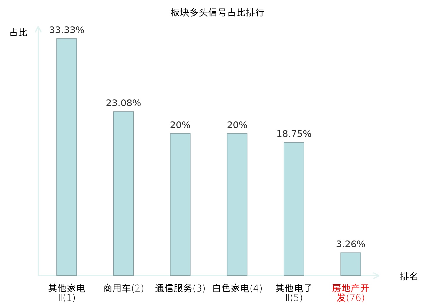 全市场所有行业板块中主力多头信号占比排名中,其他家电Ⅱ板块位居第一。其他家电Ⅱ板块名次提升最快,较昨日上升129位。