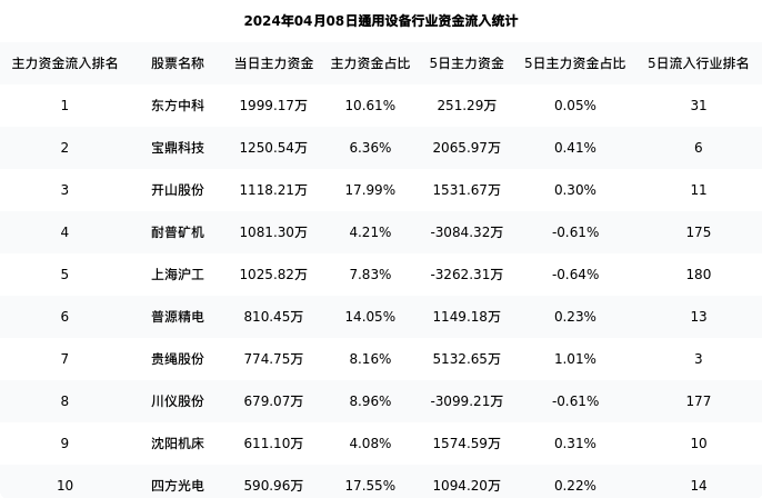 从主力资金流向来看,通用设备行业今日主力资金流入34.01亿元,在所有申万二级行业中排名:19/131。