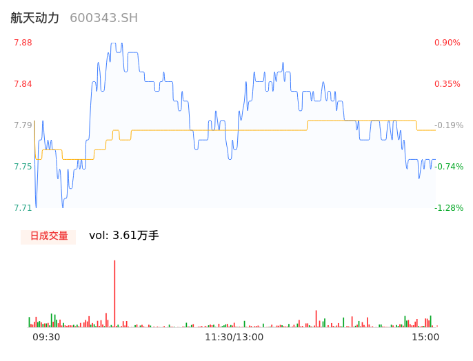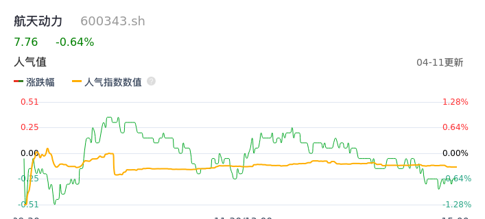 04月11日,航天动力收报7.76,股价涨幅-0.64%,成交金额2809.27万元,换手率0.56%。
