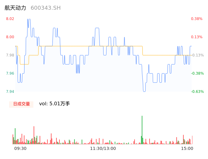 04月29日,航天动力收报7.99,股价涨幅0.00%,成交金额3996.37万元,换手率0.78%。