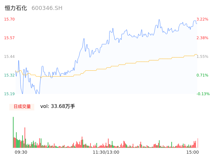 04月24日,恒力石化收报15.68,股价涨幅3.09%,成交金额5.21亿元,换手率0.48%。