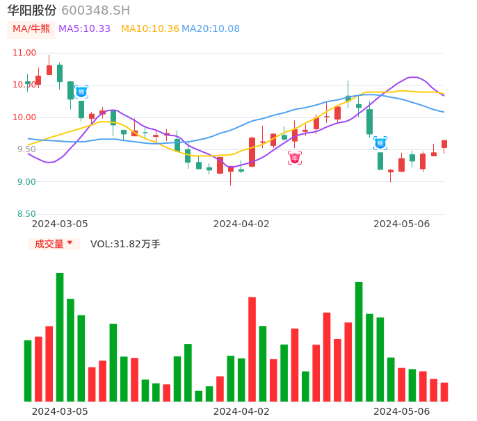 05月06日,华阳股份收报9.64,股价涨幅2.01%,成交金额3.04亿元,换手率0.88%。