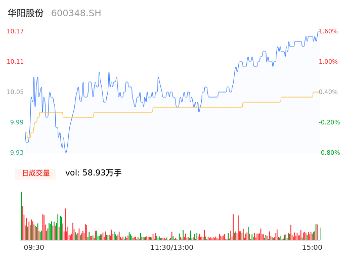 04月17日,华阳股份收报10.16,股价涨幅1.50%,成交金额5.92亿元,换手率1.63%。
