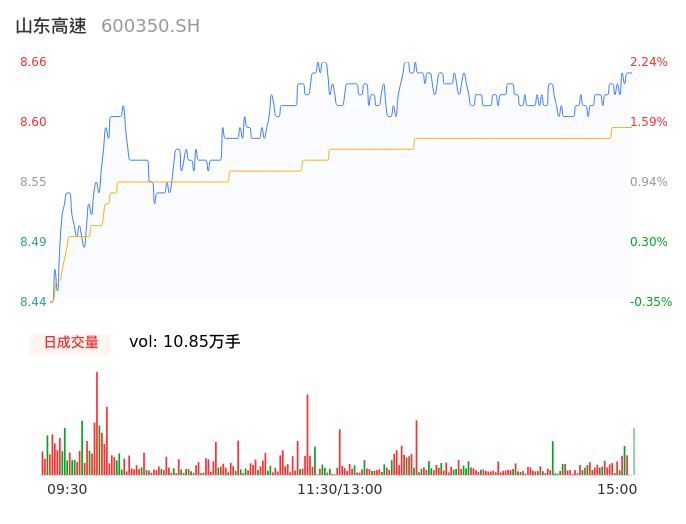 04月11日,山东高速收报8.64,股价涨幅2.01%,成交金额9326.08万元,换手率0.22%。