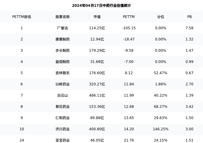 从估值角度看:亚宝药业最新市盈率PETTM为21.76,在行业内排名20/71,处于24.15分位。