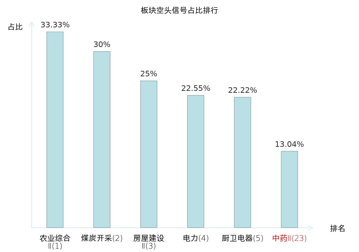 全市场所有行业板块中主力空头信号占比排名中,农业综合Ⅱ板块位居第一。旅游及景区板块名次提升最快,较昨日上升112位。