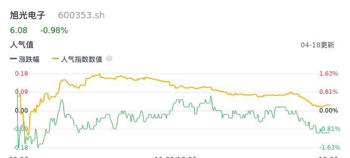 04月18日,旭光电子收报6.08,股价涨幅-0.98%,成交金额7065.18万元,换手率1.40%。