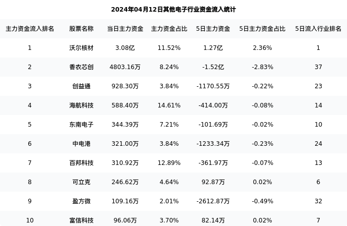 从主力资金流向来看,其他电子行业今日主力资金流入24.82亿元,在所有申万二级行业中排名:61/131。