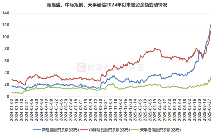 注:新易盛、中际旭创、天孚通信2024年以来融资余额变动情况(截至8月29日)