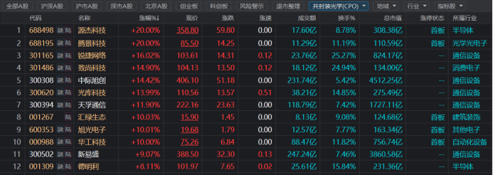 注:CPO概念股今日活跃(截至9月1日收盘)