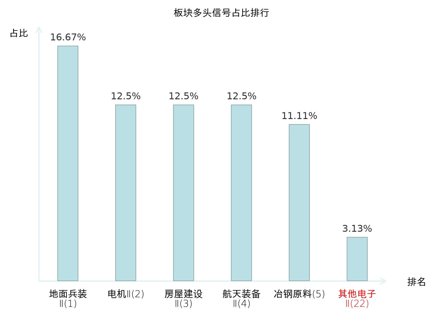 从主力宝信号数据分析,旭光电子所属的其他电子Ⅱ板块中共有1只股票发出主力多头信号,主力多头信号占比在全行业中排名第22位,较昨日上升40位。较高的排名表明主力当日买入意愿较强,排名上升可能反映了主力对该板块态度的积极调整。全市场所有行业板块中,地面兵装Ⅱ板块的主力多头信号占比最高,位居第一;房屋建设Ⅱ板块名次提升最快,较昨日上升115位。这些变动揭示了不同行业间主力资金偏好的变化,为投资者观察市场趋势提供了重要依据。