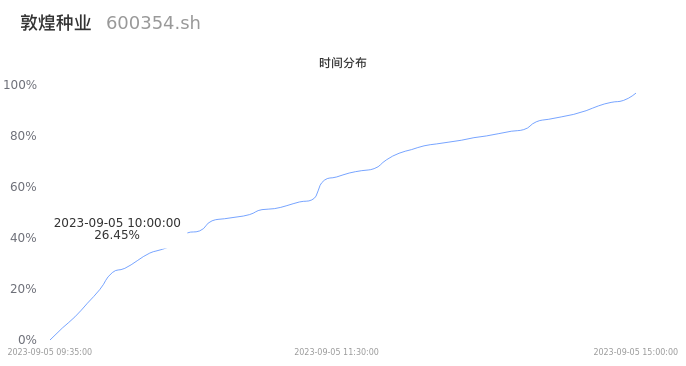600354敦煌种业2023年09月05日成交9.63万手,成交金额6296.82万元,相较昨日缩量8188手,换手率1.82%,成交清淡。