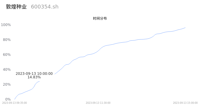 600354敦煌种业2023年09月13日成交6.35万手,成交金额4049.52万元,相较昨日放量1.18万手,换手率1.20%,成交清淡。