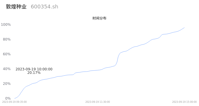 600354敦煌种业2023年09月19日成交7.13万手,成交金额4547.28万元,相较昨日放量1.88万手,换手率1.35%,成交清淡。