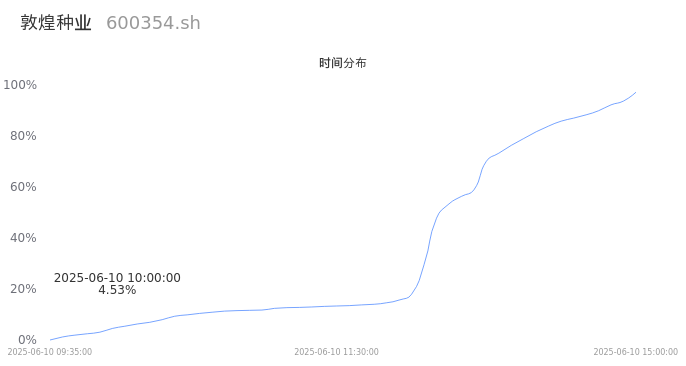 600354敦煌种业2025年06月10日成交87.83万手,成交金额5.56亿,相较昨日放量69.54万手,换手率16.64%,成交活跃。