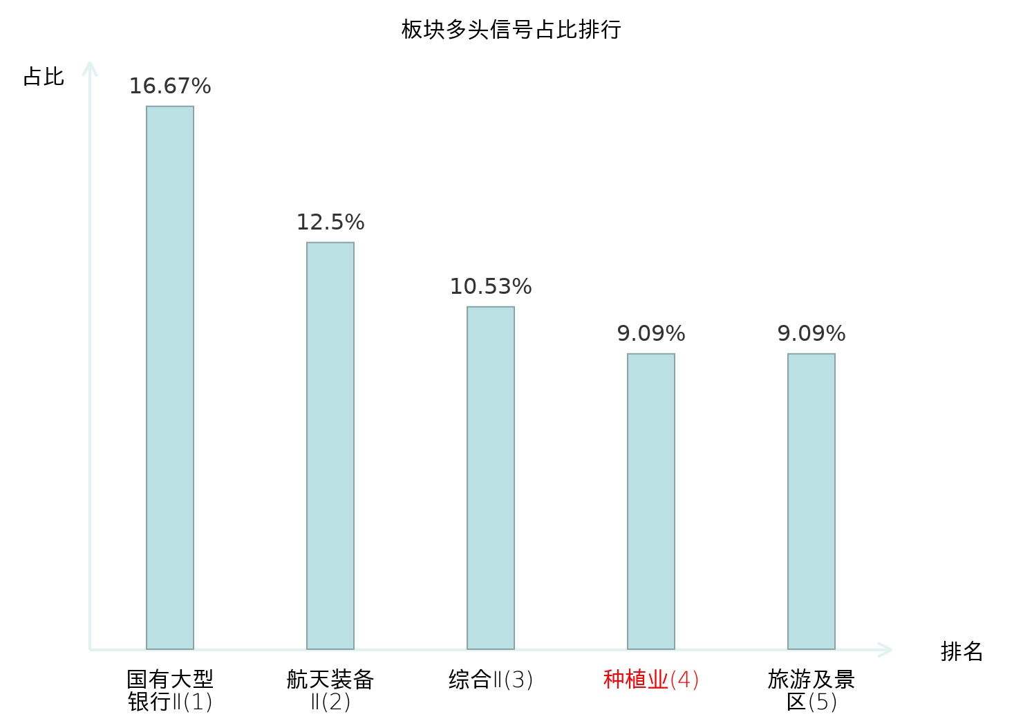 从主力宝信号数据分析,敦煌种业所属的种植业板块中共有2只股票发出主力多头信号,主力多头信号占比在全行业中排名第4位,较昨日上升94位。较高的排名表明主力当日买入意愿较强,此次排名上升反映了主力对种植业板块态度的积极变化。全市场所有行业板块中,国有大型银行Ⅱ板块的主力多头信号占比最高,位居第一。国有大型银行Ⅱ板块名次提升最快,较昨日上升123位。这些变动揭示了不同行业间主力资金动向的变化,为投资者提供了关于市场情绪和潜在投资机会的重要线索。