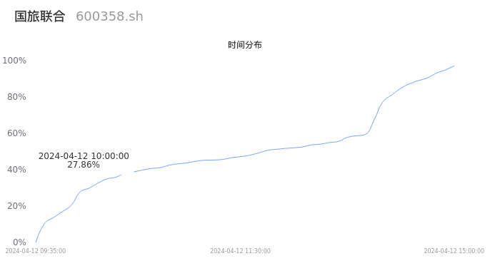 600358国旅联合2024年04月12日成交21.25万手,成交金额8531.15万元,相较昨日放量10.42万手,换手率4.21%,成交清淡。
