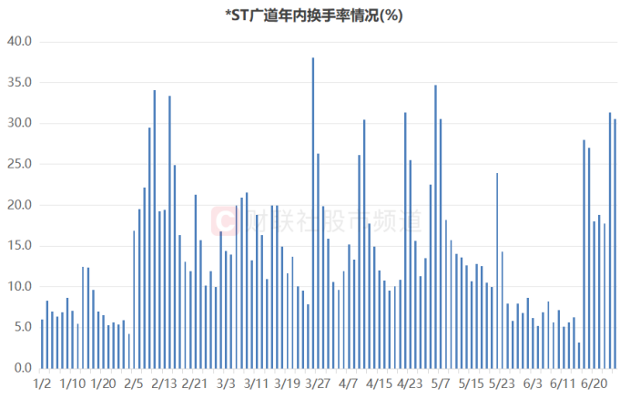 注:*ST广道年内换手率情况(截至6月26日收盘)