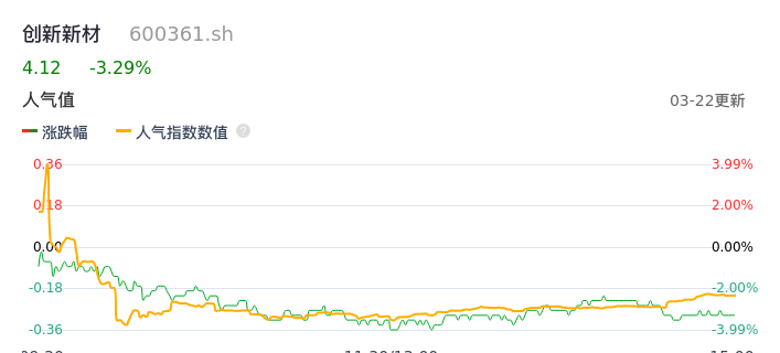 03月22日,创新新材收报4.12,股价涨幅-3.29%,成交金额1.20亿元,换手率2.90%。