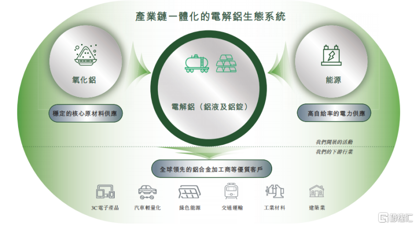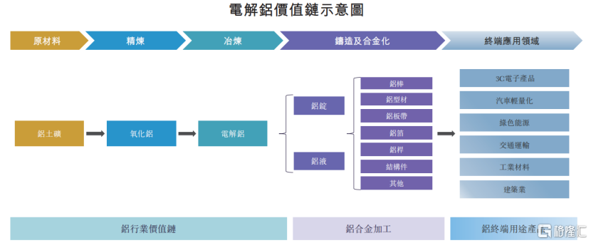 电解铝及氧化铝产品需求受其在下游市场的应用推动,包括3C电子产品、汽车轻量化、绿色能源、交通运输、工业材料及建筑业。