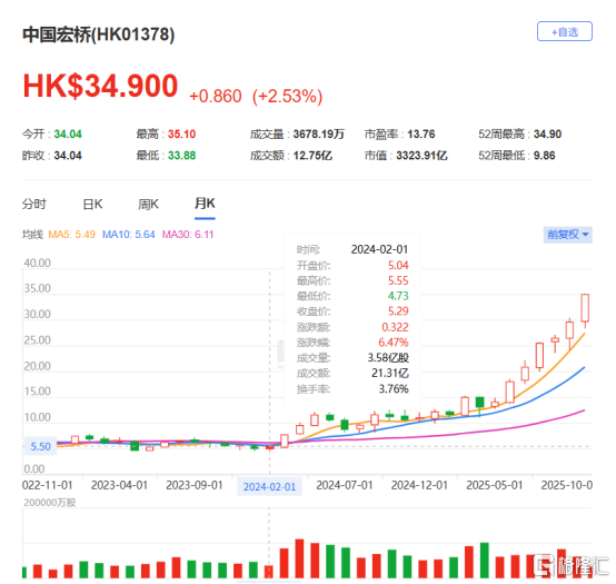 其中,作为铝产业链代表性企业,中国宏桥股价自2024年初至今涨幅已超6倍。