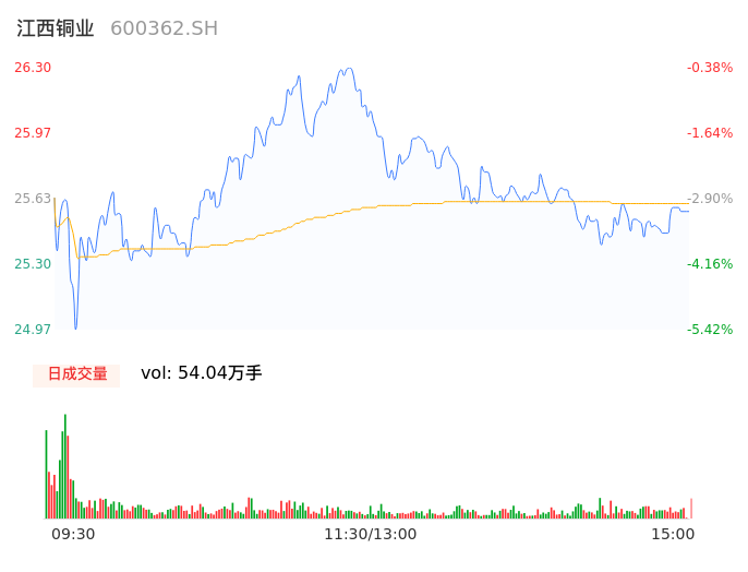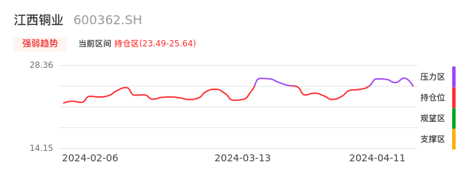 04月11日,江西铜业收报25.57,股价涨幅-3.14%,成交金额13.84亿元,换手率2.60%。
